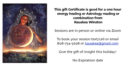 a one hour recorded astrology reading by Kauakea Winston in person or via online using Zoom. See your chart and understand your nature to make better decisions.