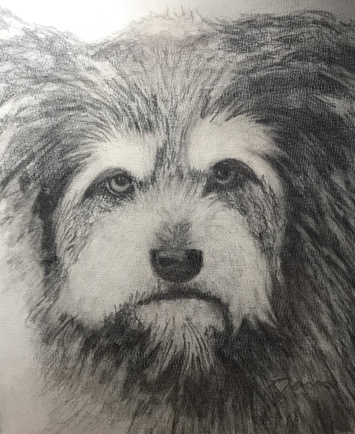 The drawings are all done on canvas . I just need a pic sent to my IPhone. Starts at $300.00 for a framed 11x14 framed piece. Goes up from there, depending on s
